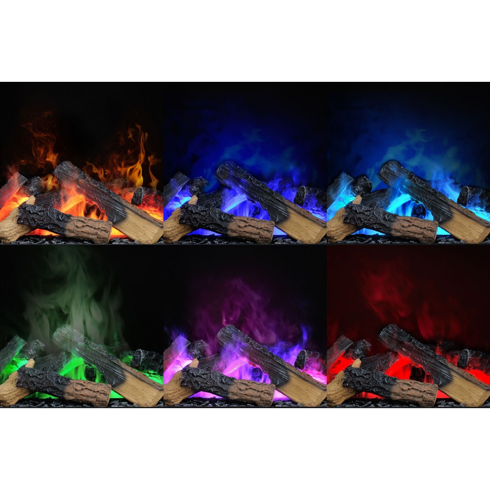 Електрокамін оснащений функцією вибору кольору полум’я, що дозволяє змінювати відтінок вогню відповідно до настрою або інтер’єру приміщення. Ви можете обрати класичний помаранчево-червоний колір або більш незвичні відтінки, створюючи унікальну атмосферу затишку.